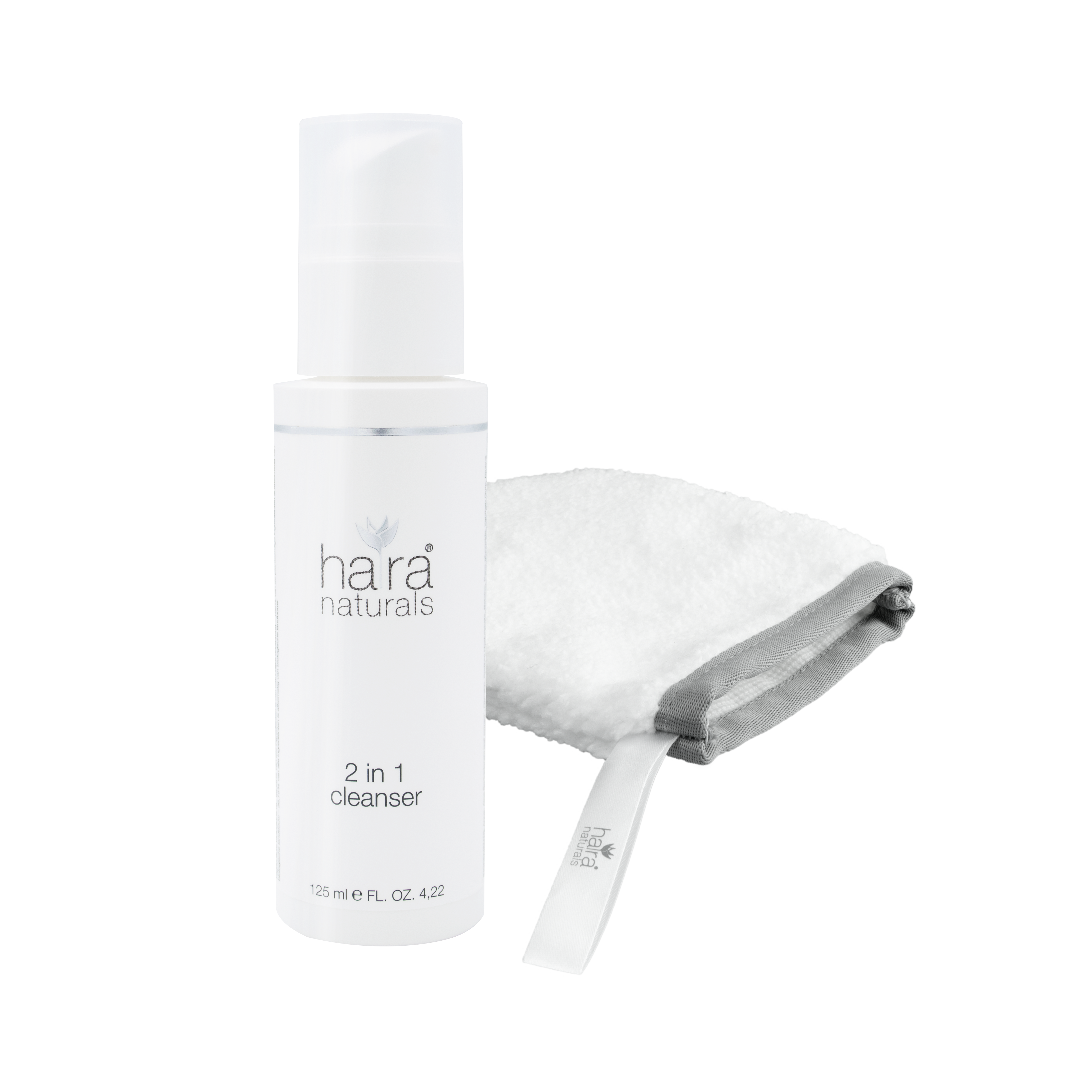 pour le soin journalier du visage, il est recommandé d’utiliser 2 in 1 cleanser avec notre petit gant démaquillant.